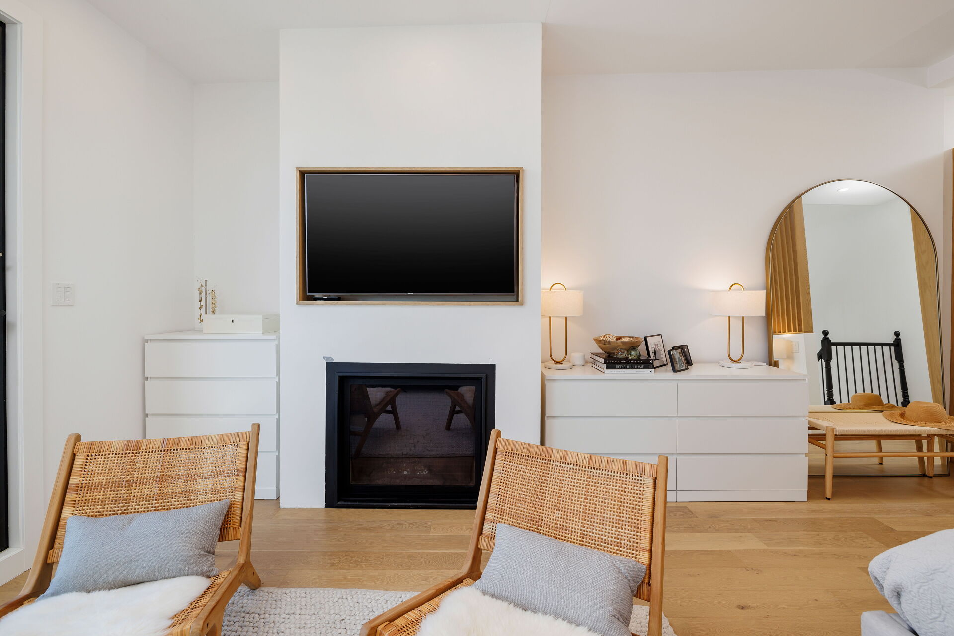 Step inside and be captivated by the soaring ceilings, rich natural light, and an inviting ambience anchored by a wood-burning fireplace.