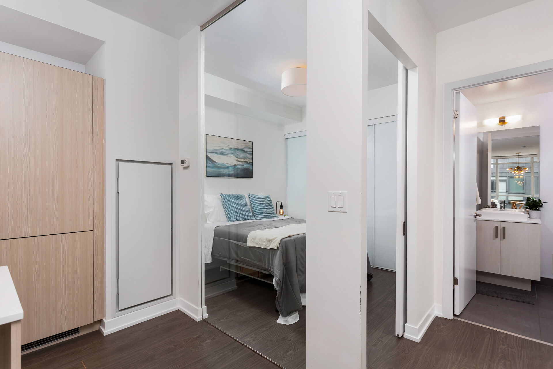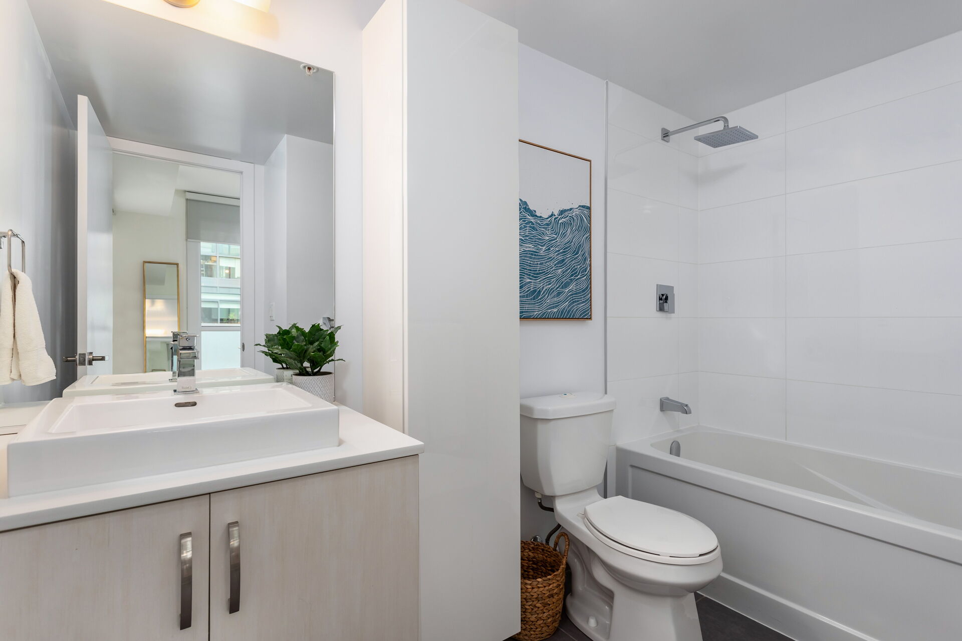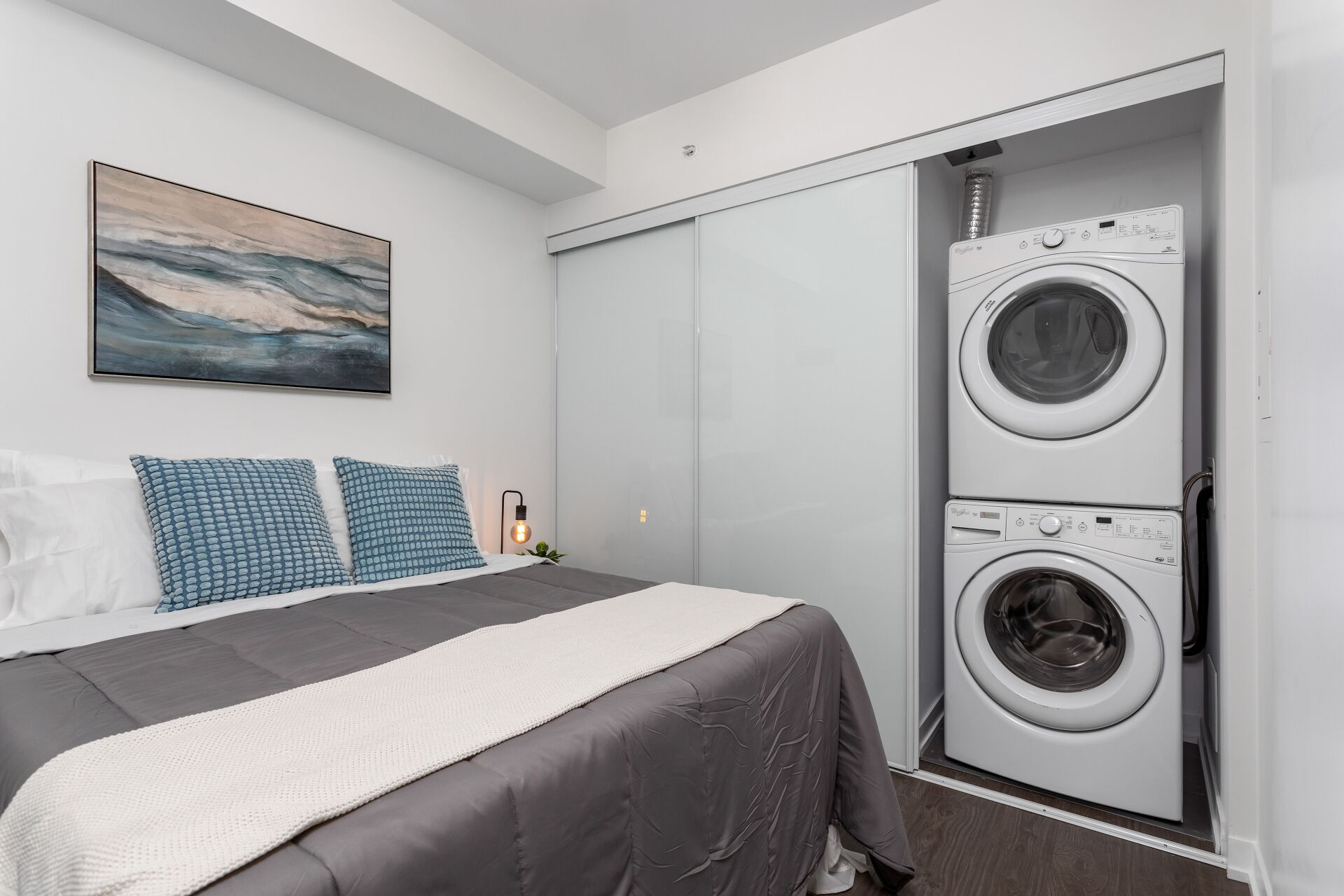 Experience stylish city living in the heart of sought-after Roncevalles with this beautifully appointed 2-bedroom, 2-bathroom condo. Designed with both comfort and function in mind, this spacious suite features an open-concept layout anchored by an oversized kitchen island, perfect for casual dining, entertaining, and everyday living. Enjoy an abundance of closet space throughout, offering exceptional storage and organization, along with the added convenience of a locker and garage parking space. Step outside to your private balcony, an ideal extension of your living space for morning coffee or evening relaxation. Residents will also appreciate access to excellent building amenities pet spa, party room, yoga room, ourdoor BBQ area, media/libary room and gym. While being just moments from transit, schools, parks, shops, and the vibrant restaurants and charm of Roncevalles.